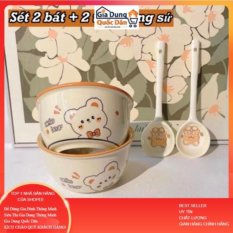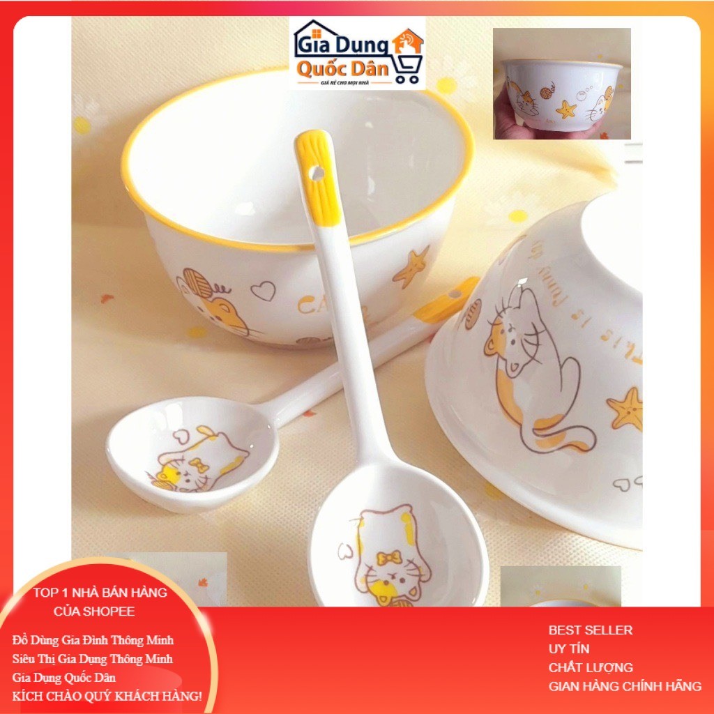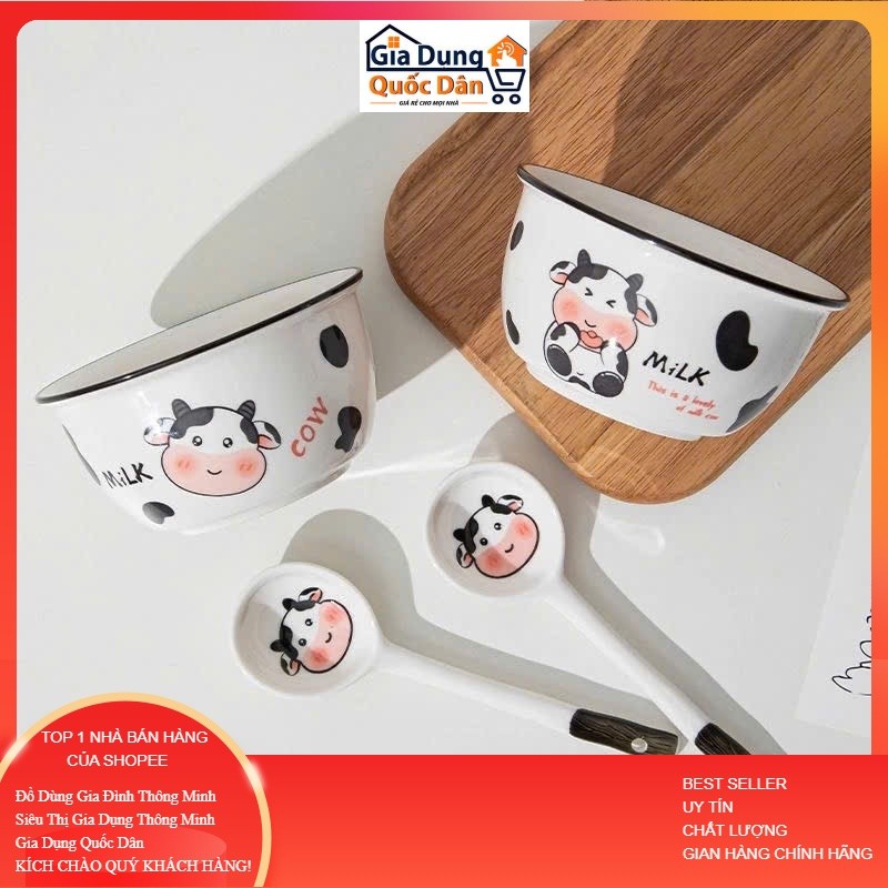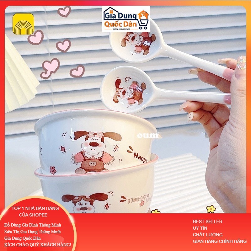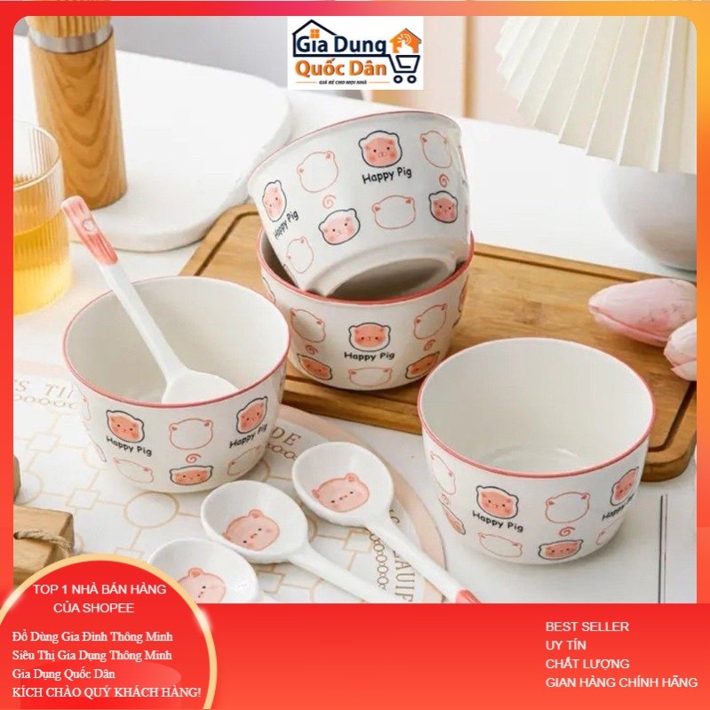 Bộ 2 Bát Sứ Kèm 2 Thìa Mặt Cười, Bát Heo Hồng, Bát Cún, Bát Mèo Hàng Loại 1 Bát ăn dặm cho bé siêu đáng yêu