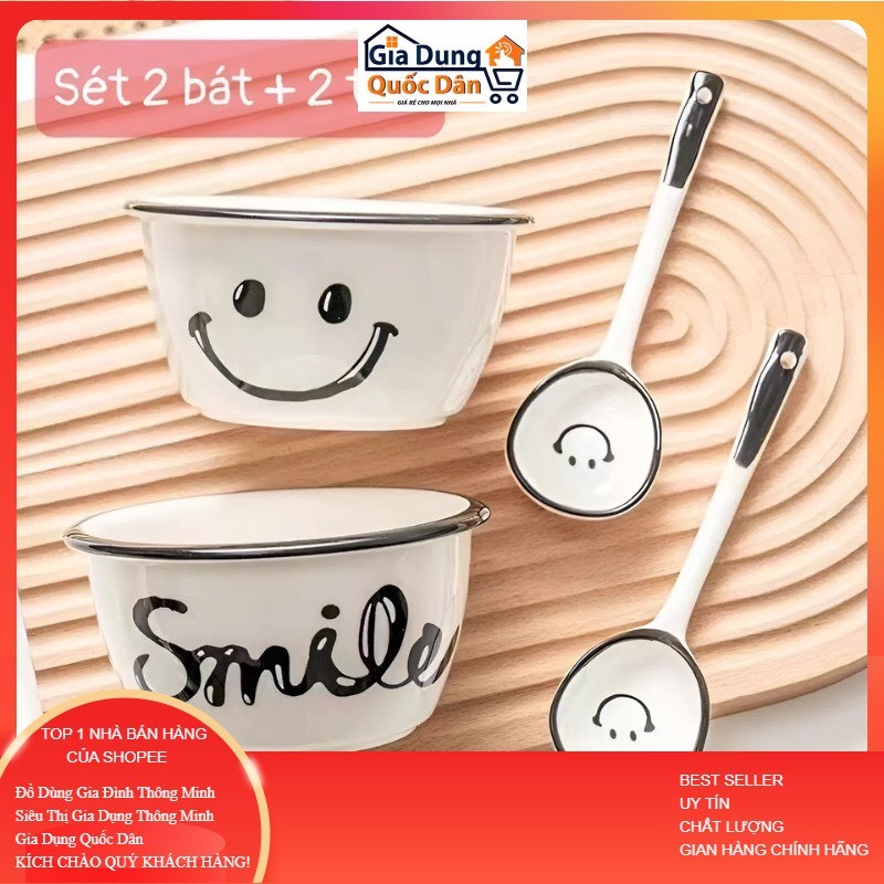 Bộ chén sứ, đĩa, tô, ăn cơm gia đình họa tiết mặt cười , smile siêu đáng yêu