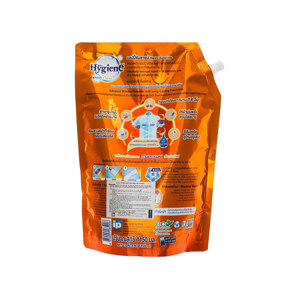 Tính năng sản phẩm Nước Xả Vải Hygiene Hương Hương Nước Hoa Túi Màu Cam - Thể Tích 1150ML