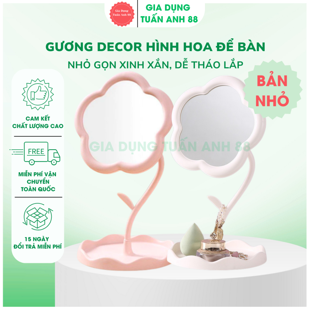 ( Bản To - Bản Nhỏ ) Gương decor để bàn trang điểm hình hoa xinh xắn - GDTA88