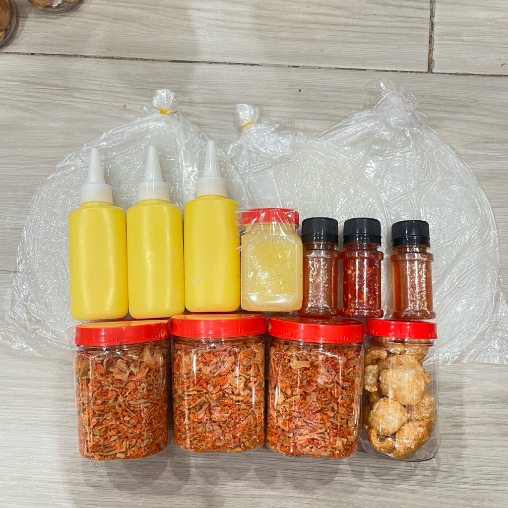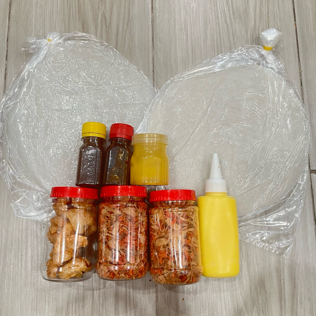 COMBO 139k - 15 MÓN] Bánh Tráng Phơi Sương (Kèm Chai Bơ Béo + 3 Chai Sốt + Hủ Muối Tép Hành Phi + Tóp Mỡ + Muối Béo + Tặng Thêm bánh tráng mini) FREESHIP