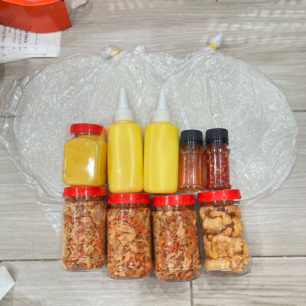 [ COMBO 139k - 15 MÓN ] Bánh Tráng Phơi Sương (Kèm Bơ + 3 Chai Sốt + Hủ Muối Tép Hành Phi + Tóp Mỡ + Muối Béo)FREESHIP