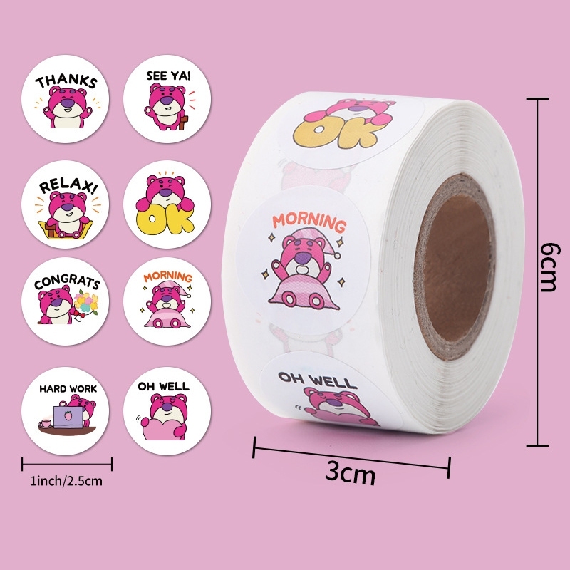 Cuộn 500 sticker khen thưởng hoạt hình cute ngộ nghĩnh, tem dán sticker thank you gói hàng thiết kế đơn giản tiện dụng