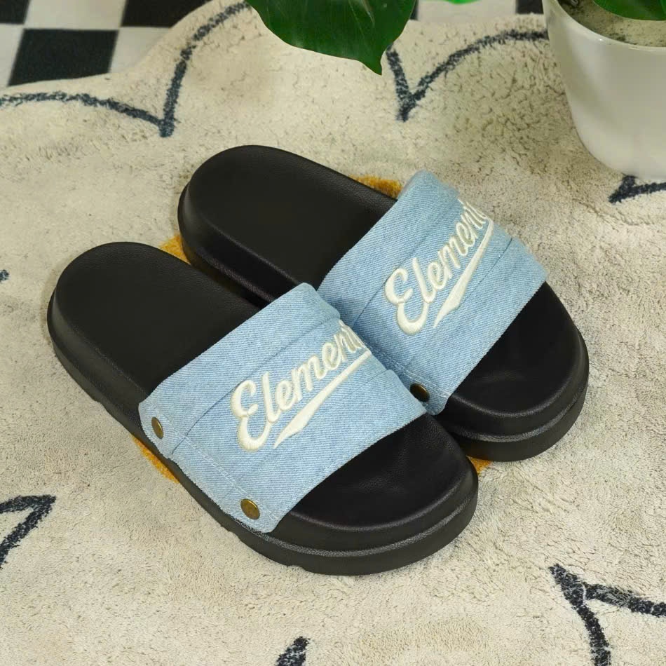 Dép ELements Nam Nữ Denim Unisex chữ thêu đính nút - (Slipper) Dép Elements vải jean đế bằng nam nữ