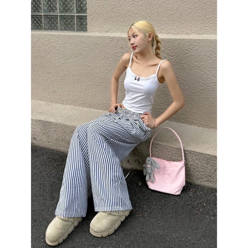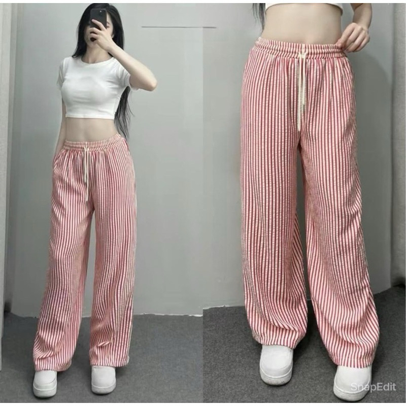 Quần Ống Rộng Kẻ Sọc Chất Liệu Đũi Xốp Siêu Mềm Mát Mặc Mùa Hè Siêu Xinh MA689