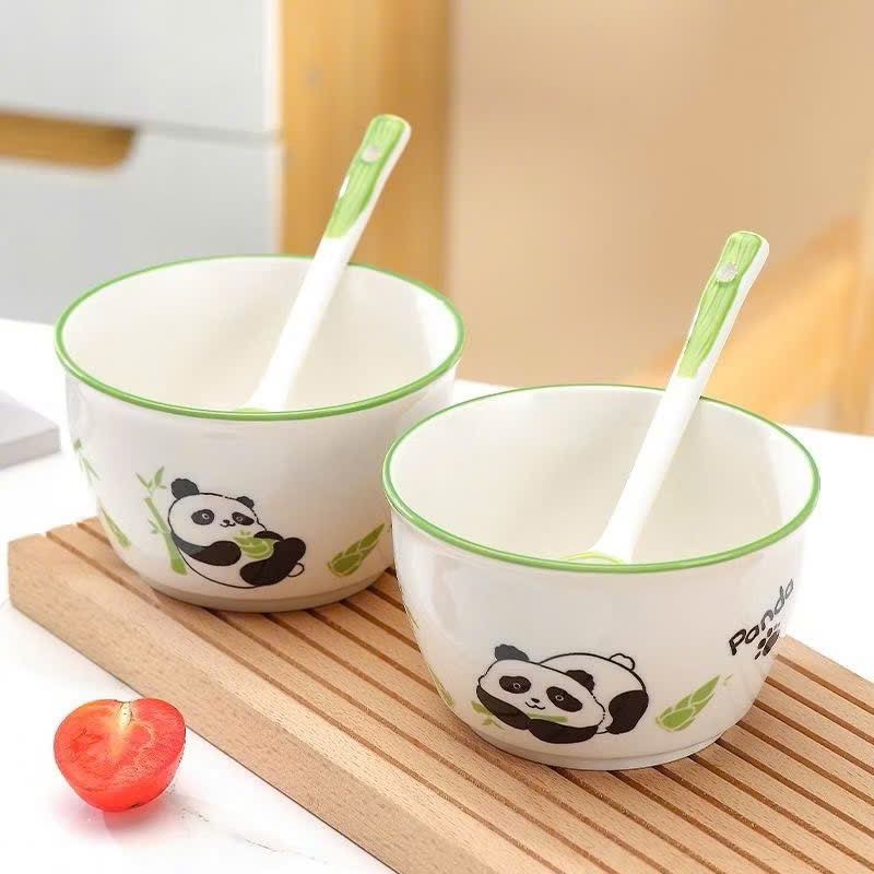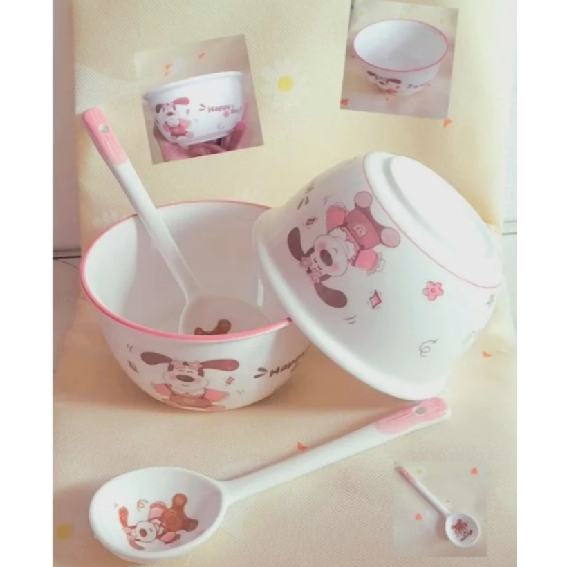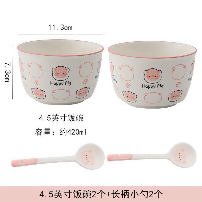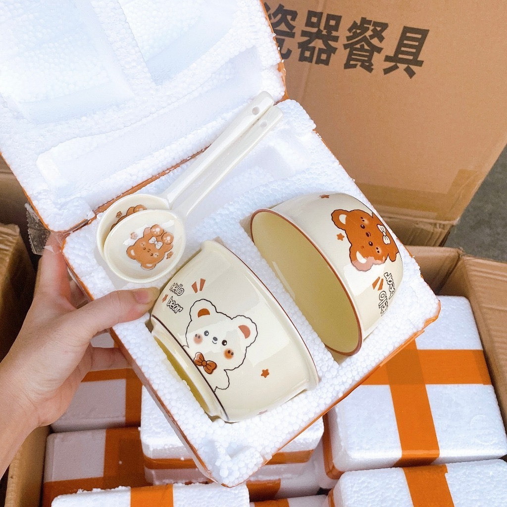 Set 2 bát gấu kèm 2 thìa - Bát sứ cho bé siêu xinh, kèm thìa đóng thùng xốp- bát lợn dễ thương- mặt cười