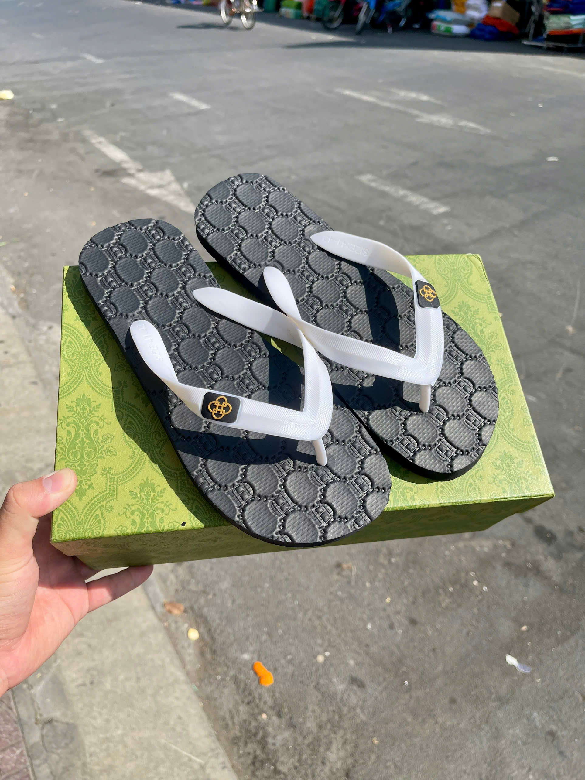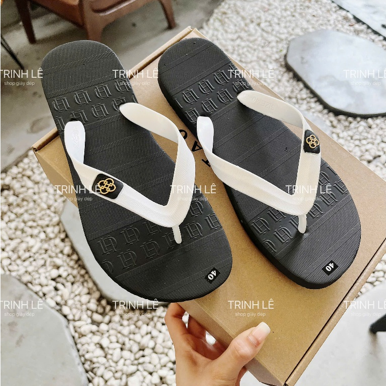 Dép Kẹp Nam Xỏ Ngón Đen Quai Trắng Thái Lan Logo HD Dập Nền Nổi Đế Cao Su Mềm THD1